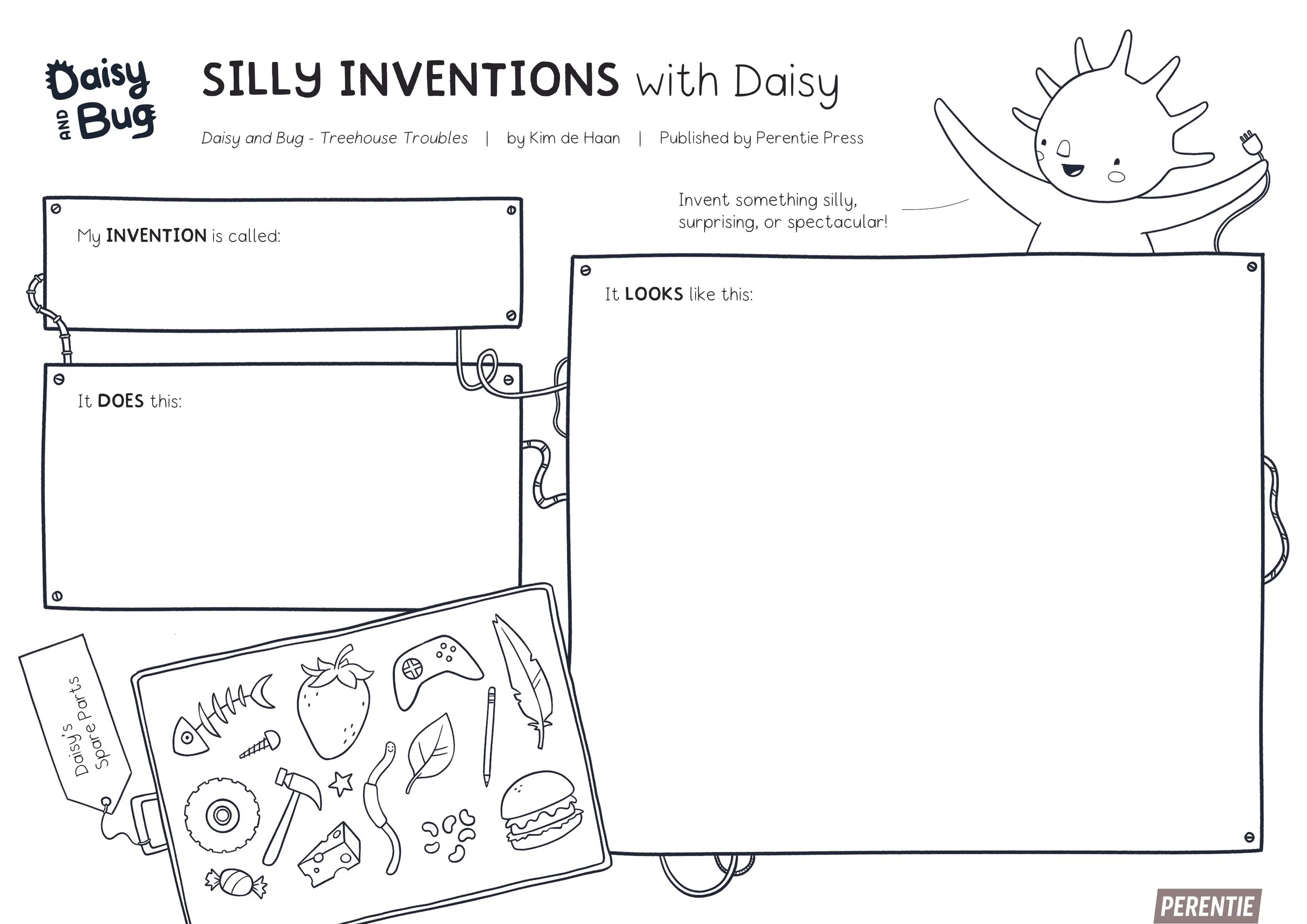 Kids can draw alongside me as I sketch Daisy, Bug, or silly inventions.Printable activity sheets