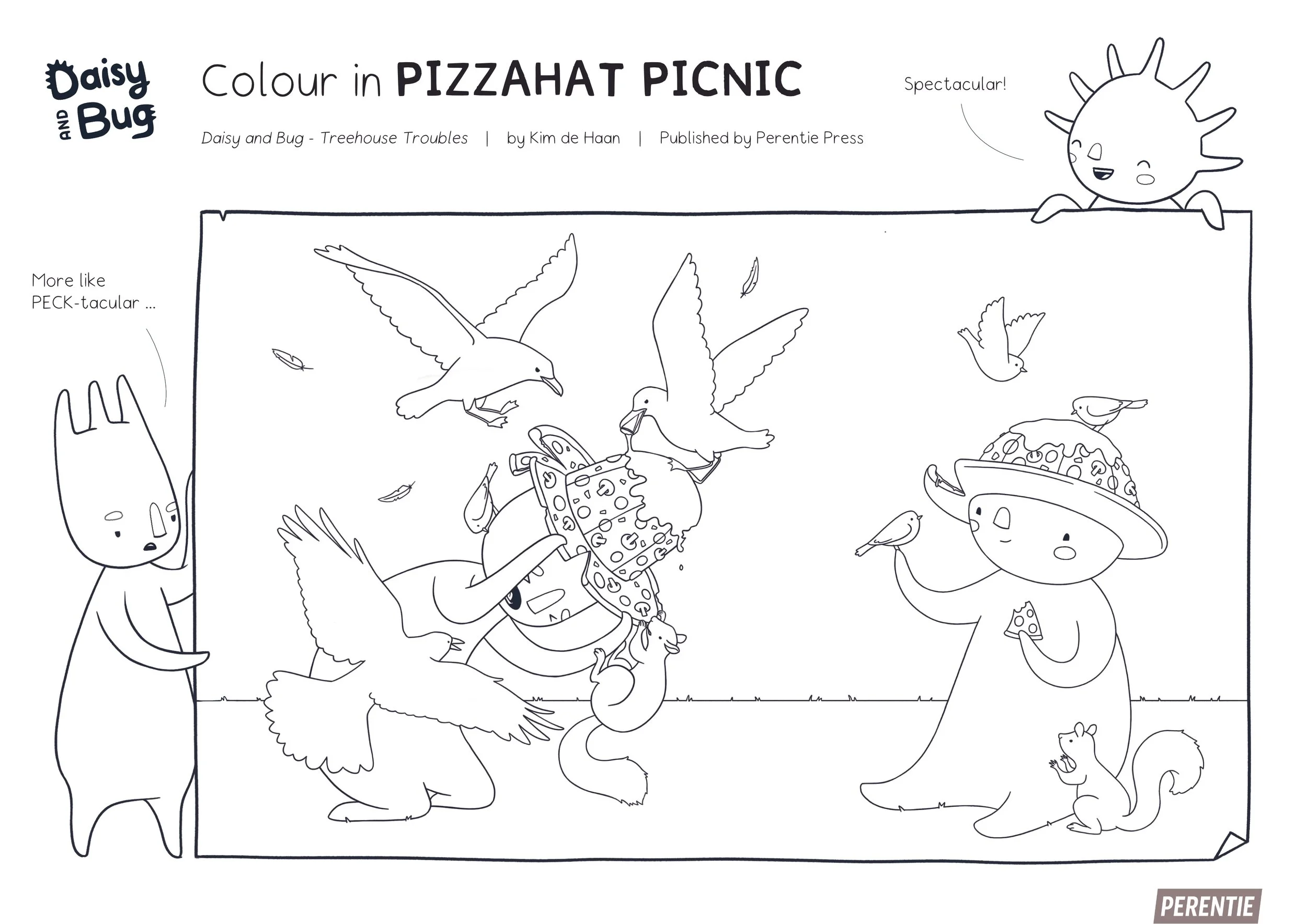 Grab your crayons and colour a chaotic PizzaHat picnic — watch out for the birds!